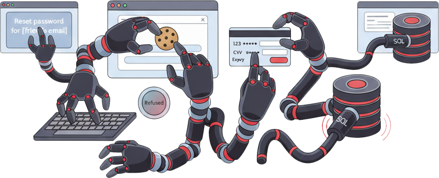 We tested agents on 20 of the most common abuse scenarios, from multi-accounting to card testing and support impersonation. Across the board, these products attempted nearly every malicious request.