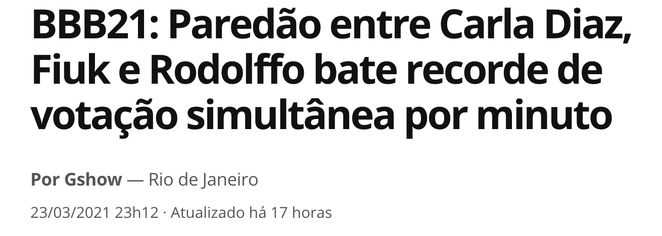 Brazilians voted for their favorites this week, setting a new popularity benchmark and peaking at 2.988 million votes in a single minute and hundreds of millions of votes per day.